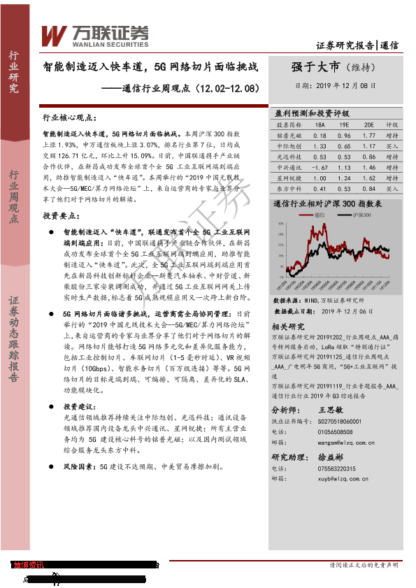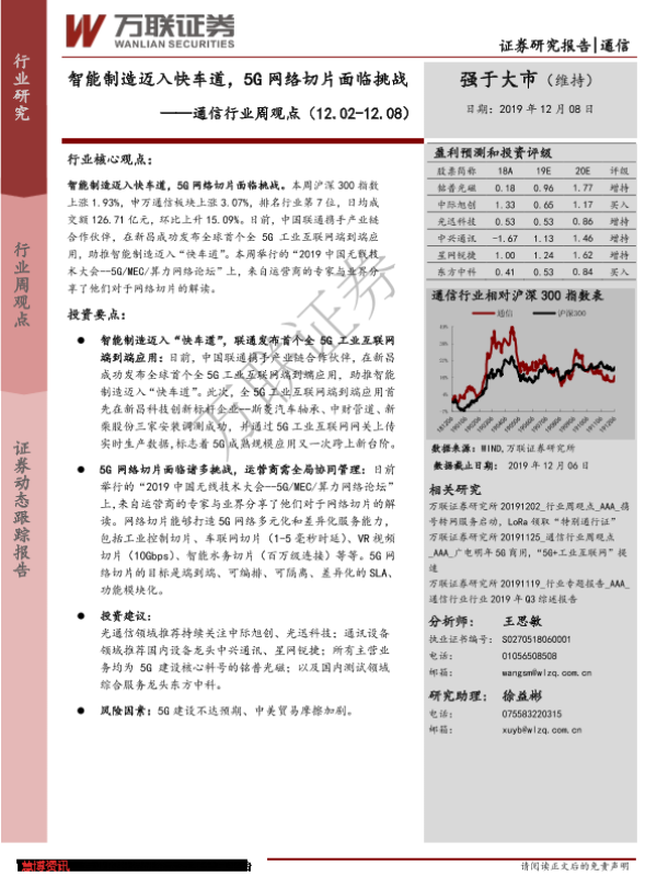 【万联证券】【20191208】20191208-万联证券-通信行业周观点:智能制造迈入快车道,5G网络切片面临挑战-9页