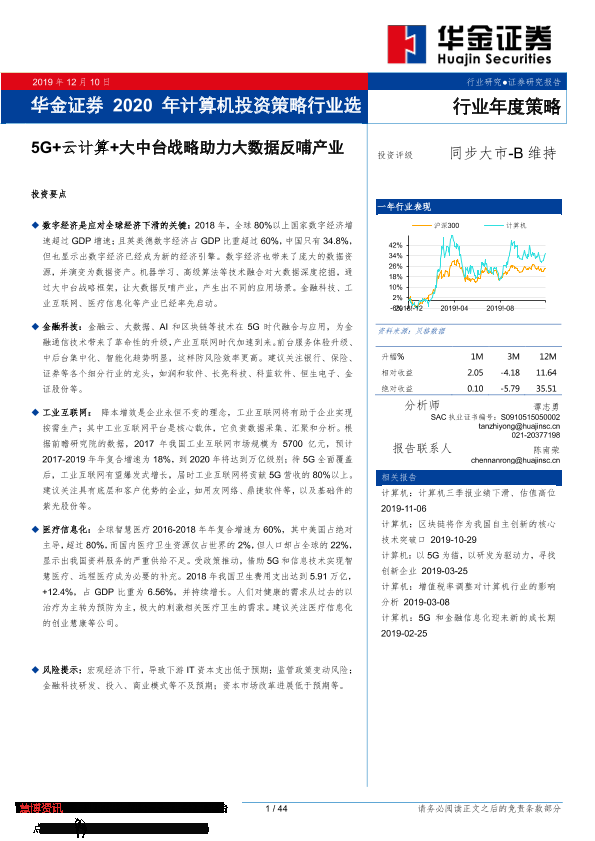 【华金证券】【20191210】2020年计算机投资策略行业选择:5G+云计算+大中台战略助力大数据反哺产业-44页