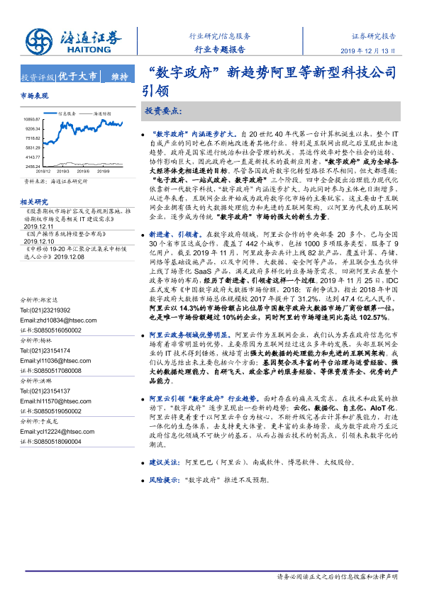 【海通证券】【20191213】信息服务行业专题报告:“数字政府”新趋势阿里等新型科技公司引领-21页