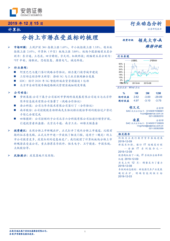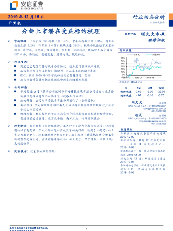 【安信证券】【20191215】计算机行业动态分析:分拆上市潜在受益标的梳理-17页