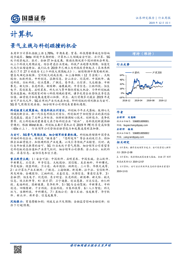 【国盛证券】【20191215】计算机行业周报:景气主线与科创碰撞的机会-20页
