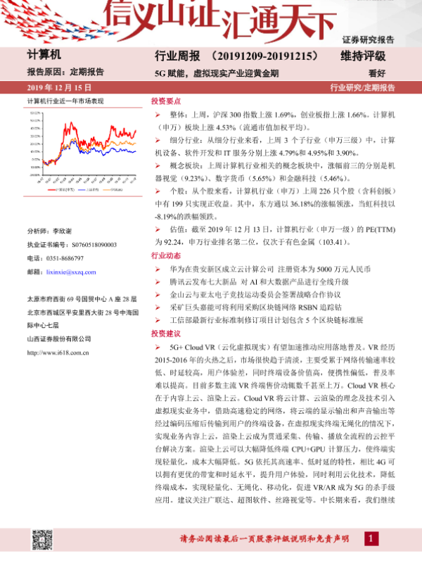 【山西证券】【20191215】计算机行业周报:5G赋能,虚拟现实产业迎黄金期-9页