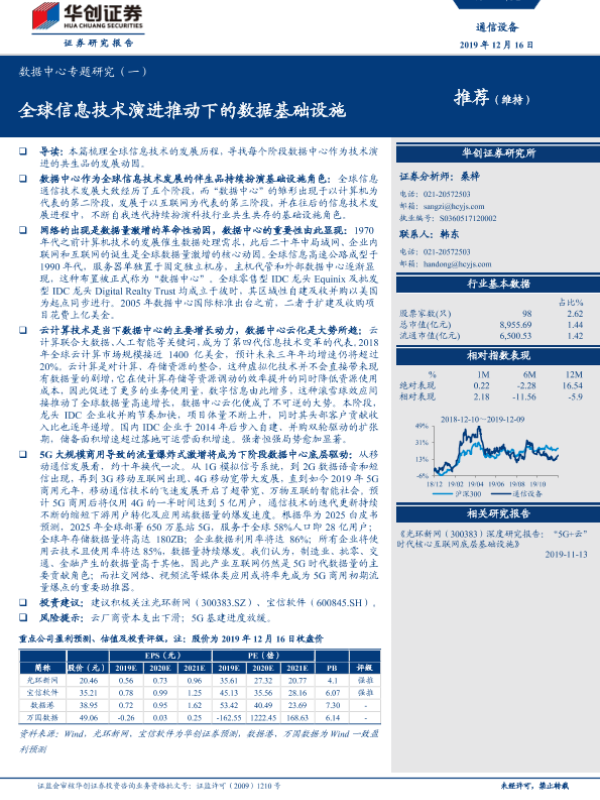【华创证券】【20191216】数据中心专题研究(一):全球信息技术演进推动下的数据基础设施-26页