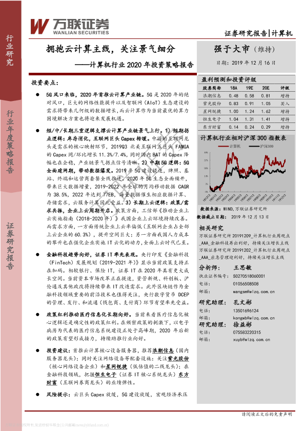 【万联证券】【20191216】20191216-万联证券-计算机行业2020年投资策略报告:拥抱云计算主线,关注景气细分-38页