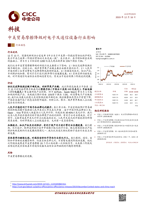 【中金公司】【20191216】科技:中美贸易摩擦降级对电子及通信设备行业影响-7页