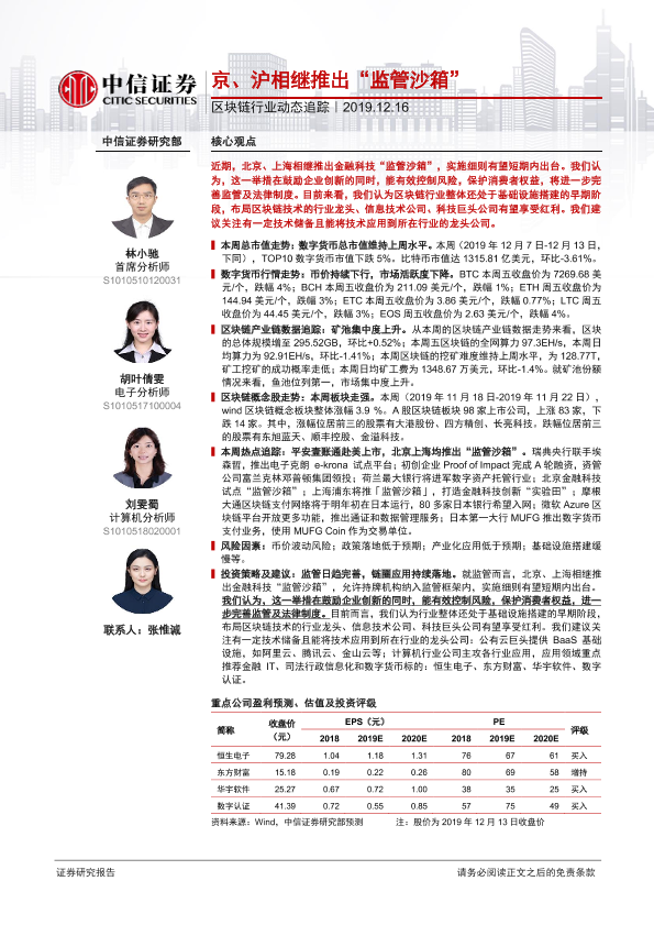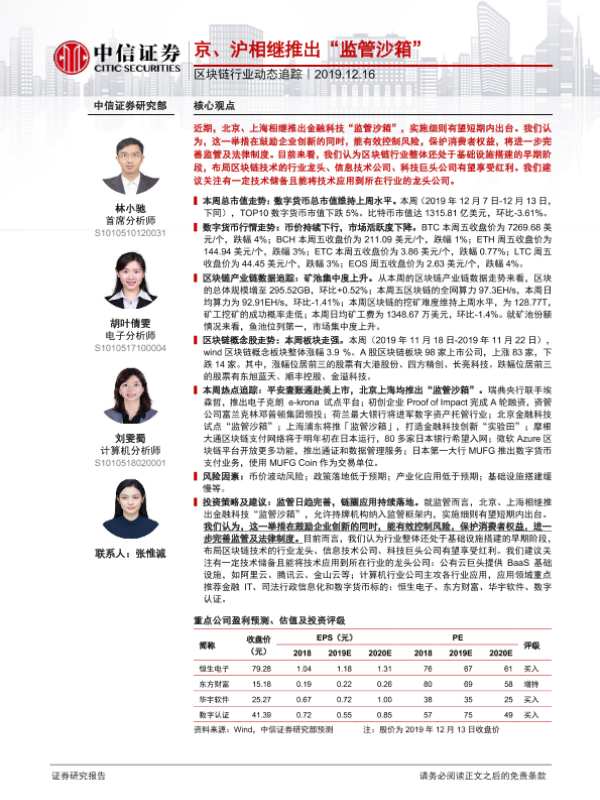 【中信证券】【20191216】区块链行业动态追踪:京、沪相继推出“监管沙箱”-18页