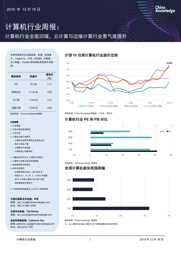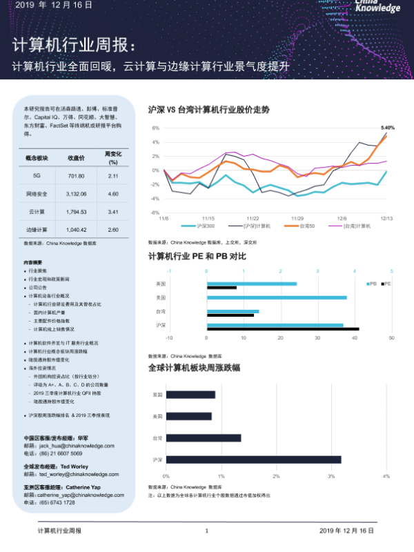 【China Knowledge】【20191216】计算机行业周报:计算机行业全面回暖,云计算与边缘计算行业景气度提升-31页