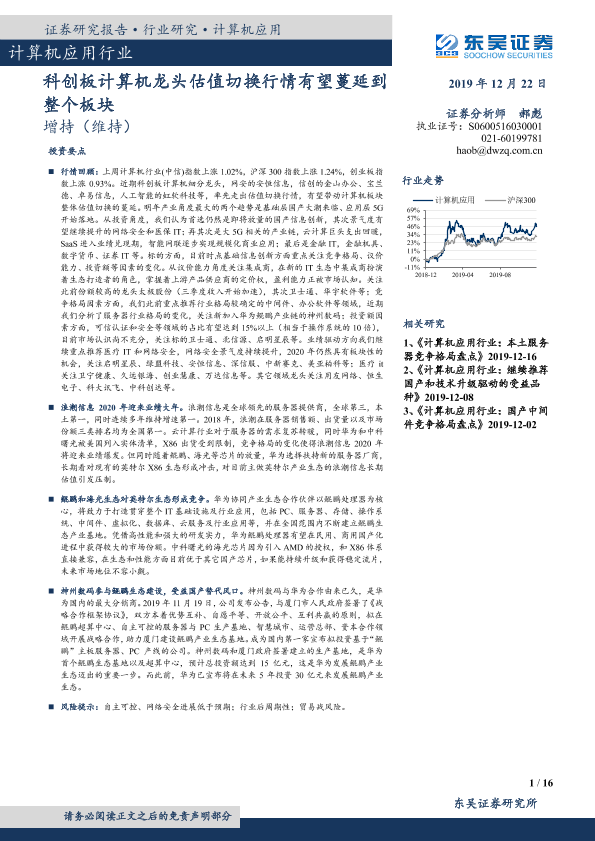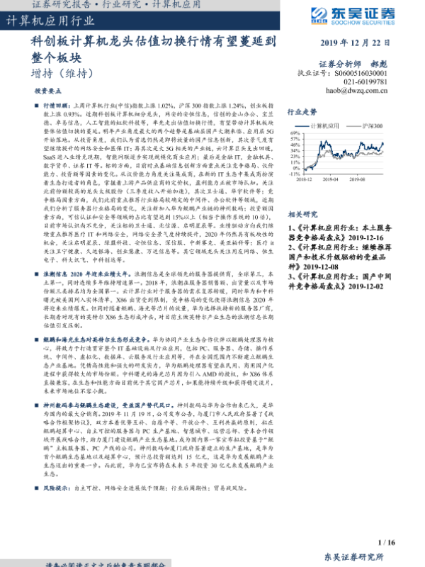 【东吴证券】【20191222】计算机应用行业:科创板计算机龙头估值切换行情有望蔓延到整个板块-16页