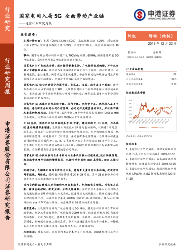 【申港证券】【20191222】通信行业研究周报:国家电网入局5G全面带动产业链-16页