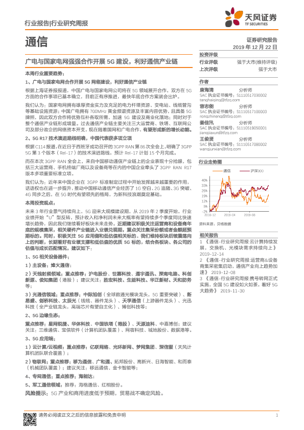 【天风证券】【20191222】通信行业研究周报:广电与国家电网强强合作开展5G建设,利好通信产业链-17页