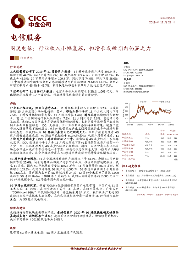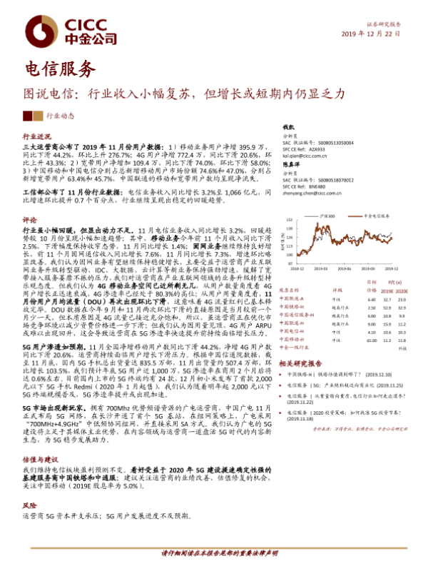 【中金公司】【20191222】图说电信:行业收入小幅复苏,但增长或短期内仍显乏力-8页