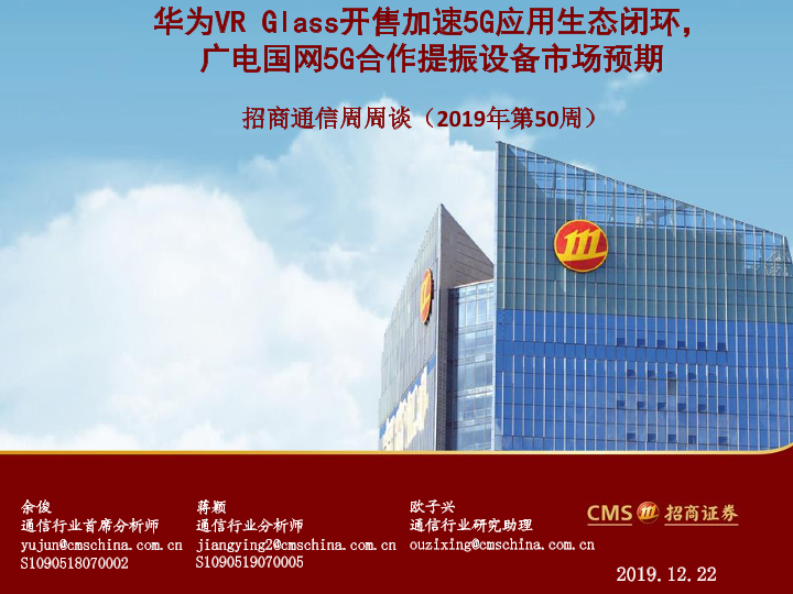 【海通证券】【20191222】招商通信周周谈(2019年第50周):华为VR Glass开售加速5G应用生态闭环,广电国网5G合作提振设备市场预期-41页