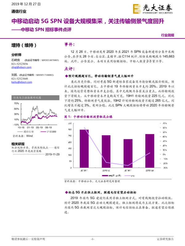 【光大证券】【20191227】中移动启动5G SPN设备大规模集采,关注传输侧景气度回升-3页