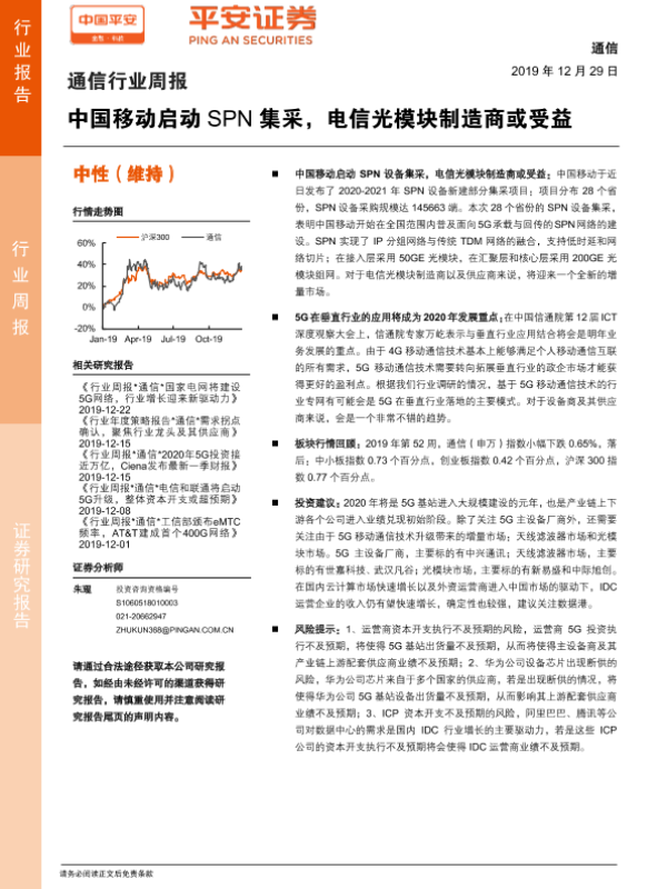 【平安证券】【20191229】通信行业周报:中国移动启动SPN集采,电信光模块制造商或受益-5页