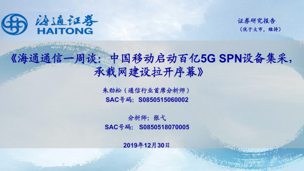 【海通证券】【20191230】海通通信一周谈:中国移动启动百亿5G SPN设备集采,承载网建设拉开序幕-10页