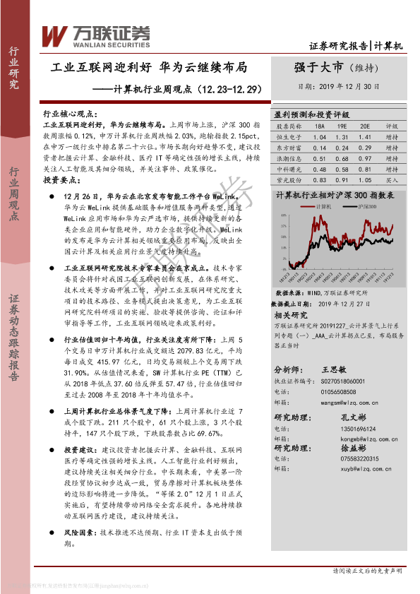 【万联证券】【20191230】计算机行业周观点:工业互联网迎利好 华为云继续布局-12页