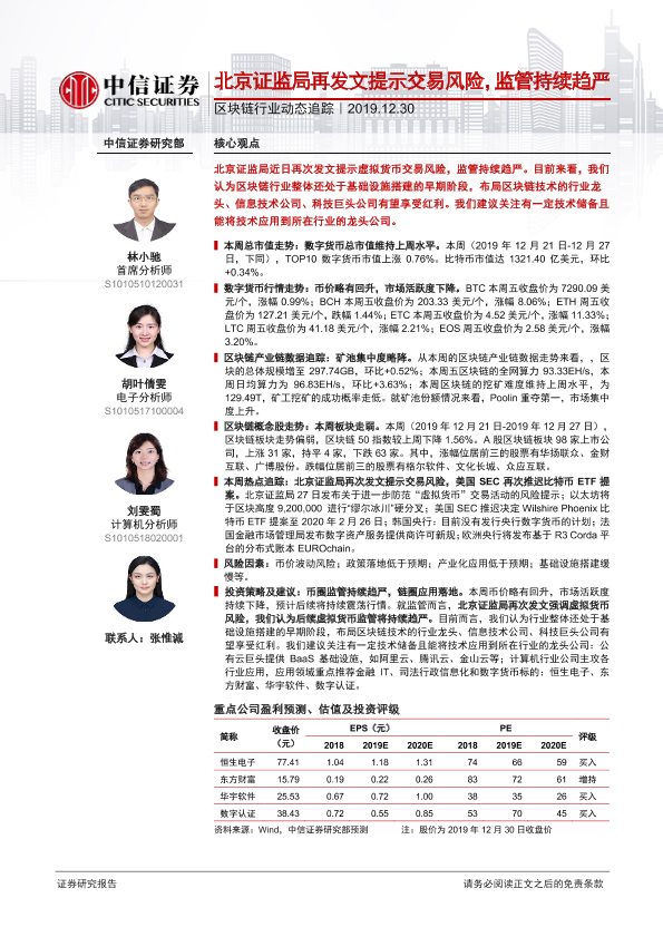 【中信证券】【20191230】区块链行业动态追踪:北京证监局再发文提示交易风险,监管持续趋严-17页