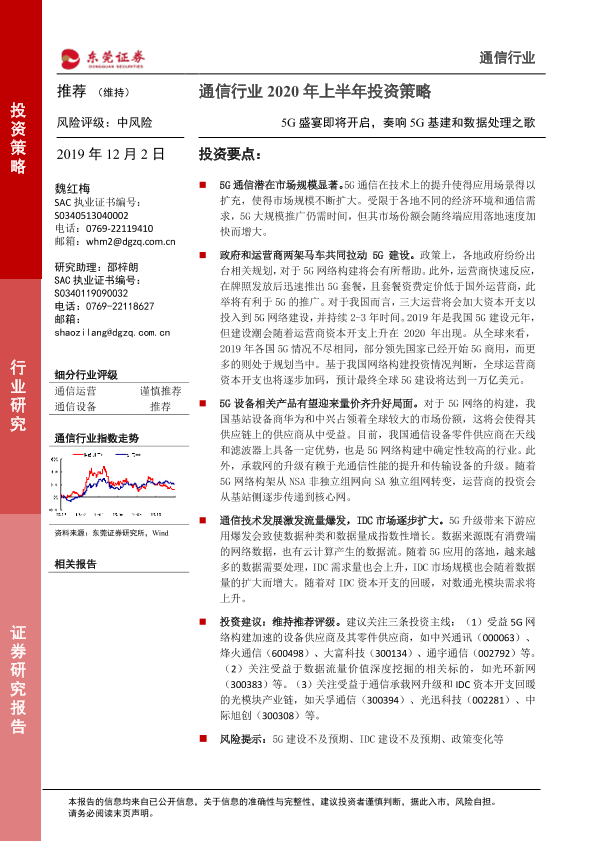 【东莞证券】【20200102】通信行业2020年上半年投资策略:5G盛宴即将开启,奏响5G基建和数据处理之歌-27页