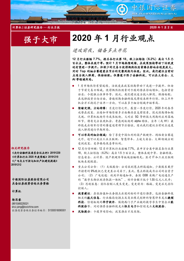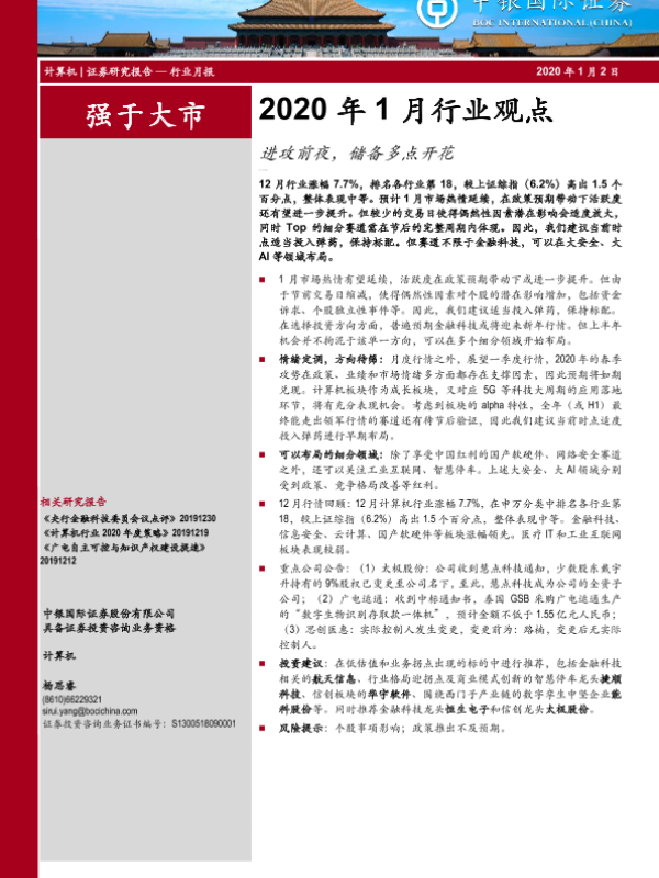 【中银证券】【20200102】计算机2020年1月行业观点:进攻前夜,储备多点开花-11页