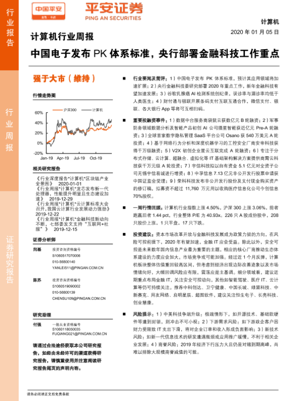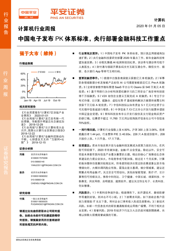 【平安证券】【20200105】计算机行业周报:中国电子发布PK体系标准,央行部署金融科技工作重点-5页