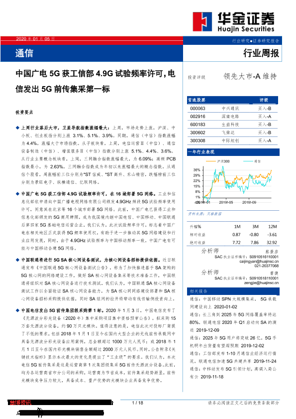 【华金证券】【20200105】通信行业周报:中国广电5G获工信部4.9G试验频率许可,电信发出5G前传集采第一标-18页