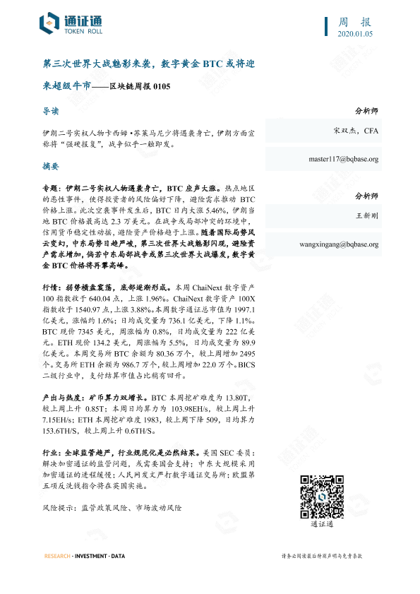 【通证通研究院】【20200105】第三次世界大战魅影来袭,数字黄金BTC或将迎来超级牛市——区块链周报 0105-13页