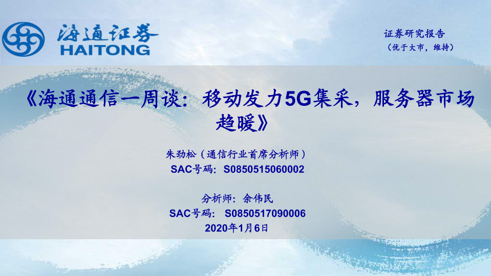 【海通证券】【20200106】海通通信一周谈:移动发力5G集采,服务器市场趋暖-10页