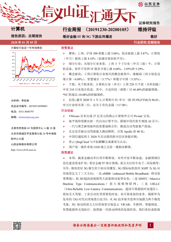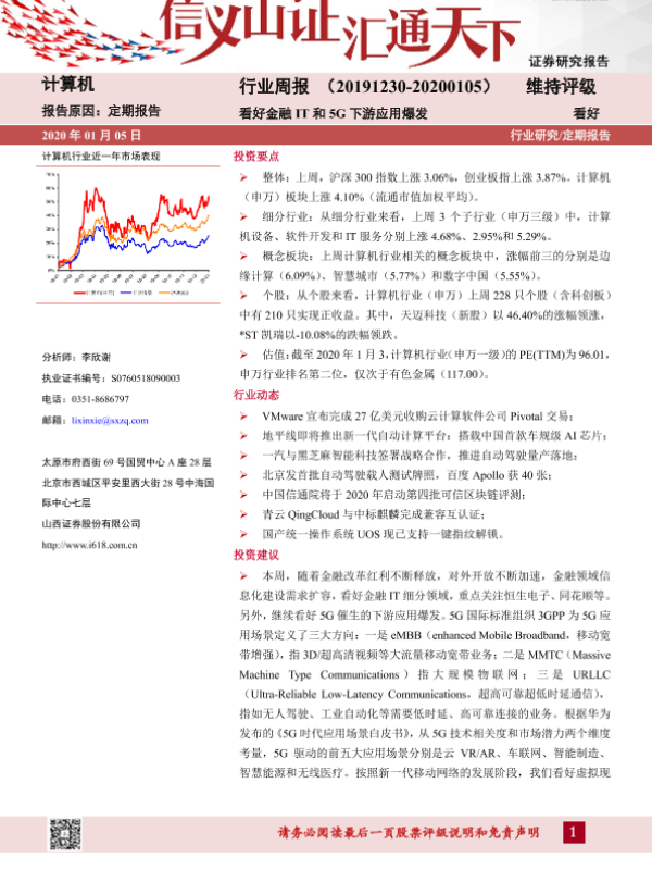 【山西证券】【20200105】20200105-山西证券-计算机行业周报:看好金融IT和5G下游应用爆发-11页