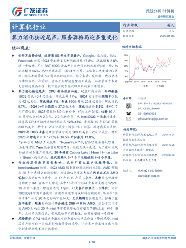 【广发证券】【20200106】计算机行业跟踪分析:算力消化接近尾声,服务器格局迎多重变化-33页