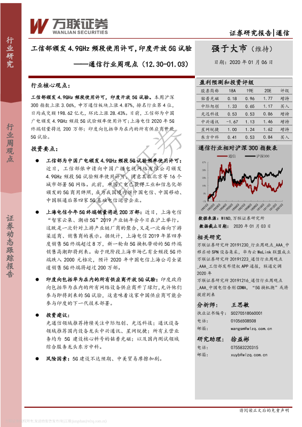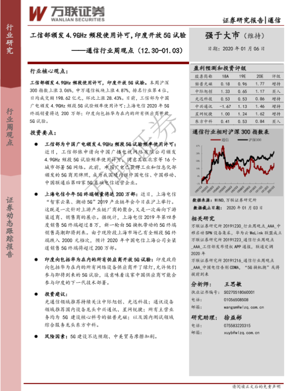 【万联证券】【20200106】通信行业周观点:工信部颁发4.9GHz频段使用许可,印度开放5G试验-11页