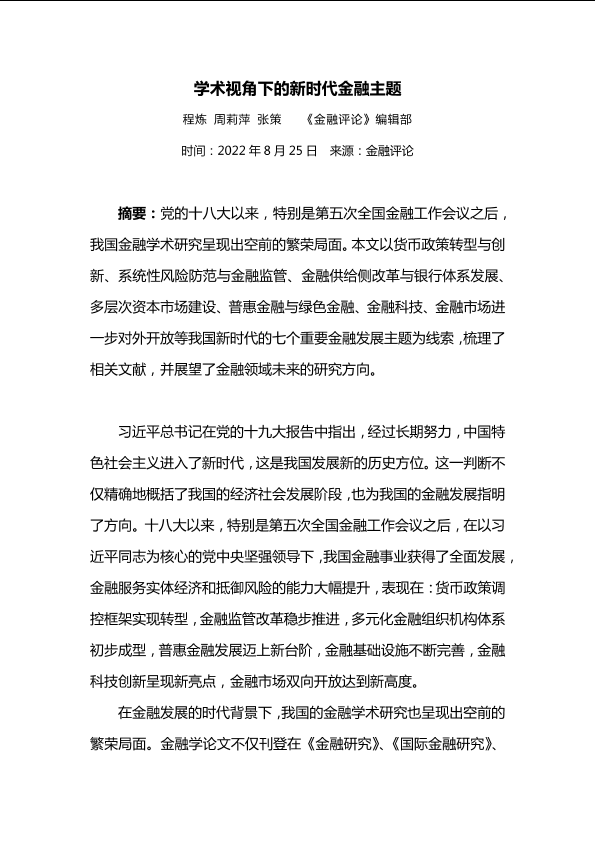 【《金融评论》编辑部】【20220825】学术视角下的新时代金融主题(上)-38页
