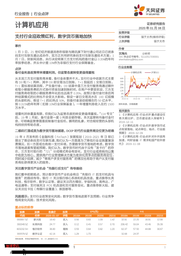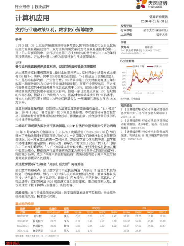 【天风证券】【20200108】计算机应用:支付行业迎政策红利,数字货币落地加快-2页