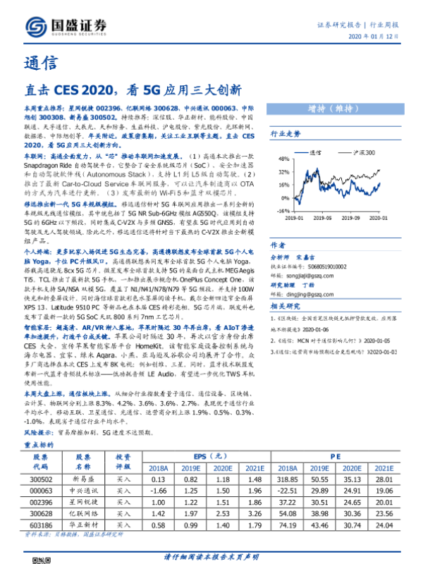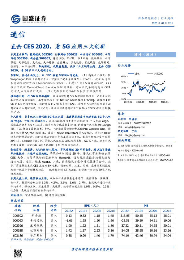 【国盛证券】【20200112】通信行业周报:直击CES 2020,看5G应用三大创新-13页