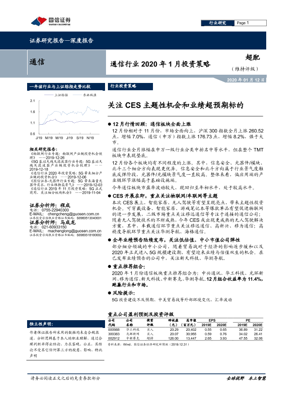【国信证券】【20200112】通信行业2020年1月投资策略:关注CES主题性机会和业绩超预期标的-13页