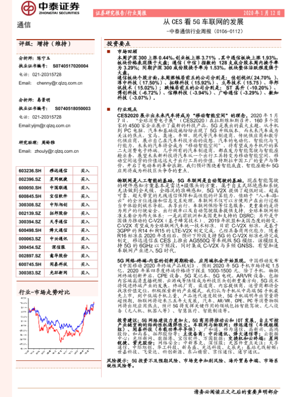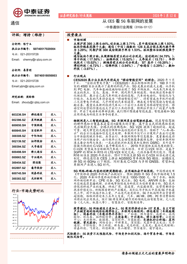 【中泰证券】【20200112】中泰通信行业周报:从CES看5G车联网的发展-9页