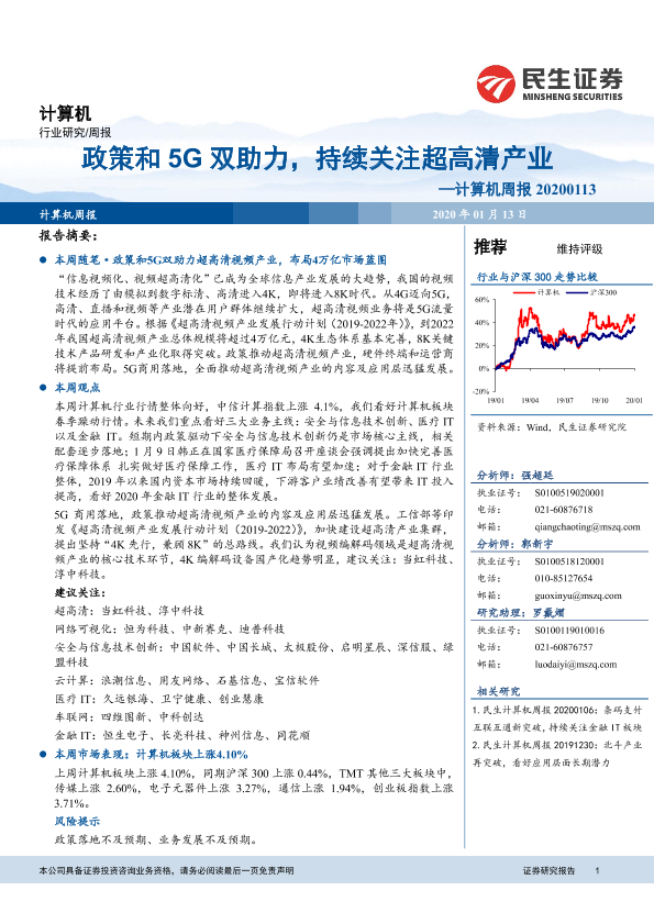 【民生证券】【20200113】政策和5G双助力,持续关注超高清产业-15页