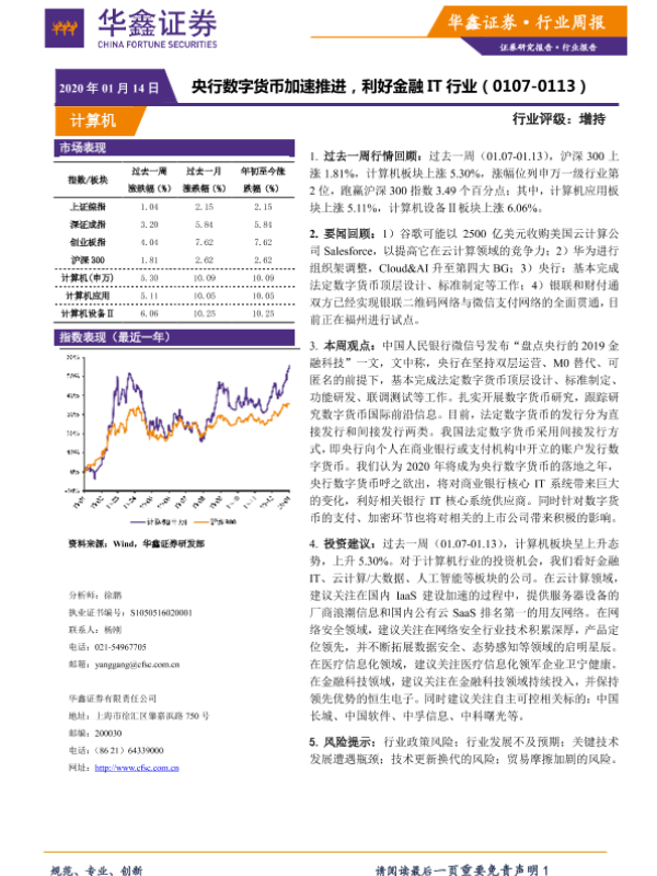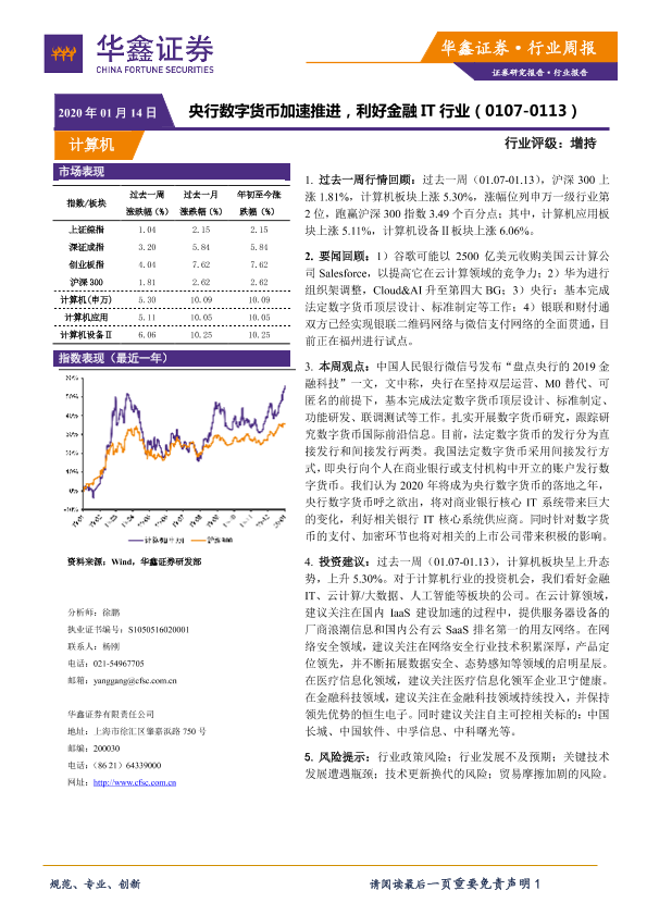 【华鑫证券】【20200114】20200114-华鑫证券-计算机行业周报:央行数字货币加速推进,利好金融IT行业-15页