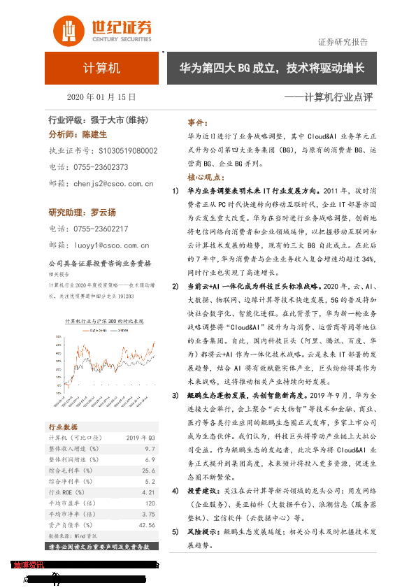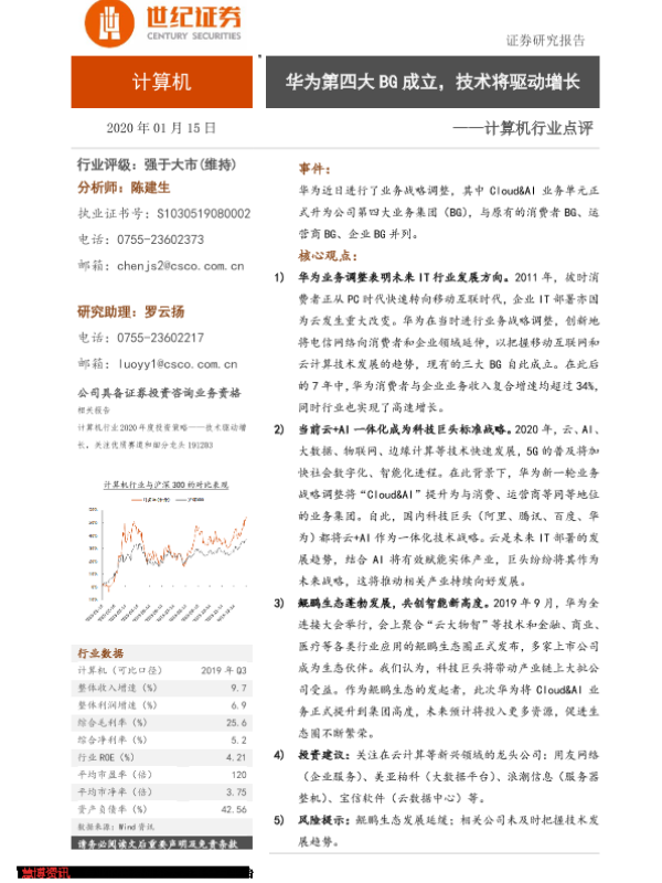 【世纪证券】【20200115】计算机行业点:华为第四大BG成立,技术将驱动增长-3页