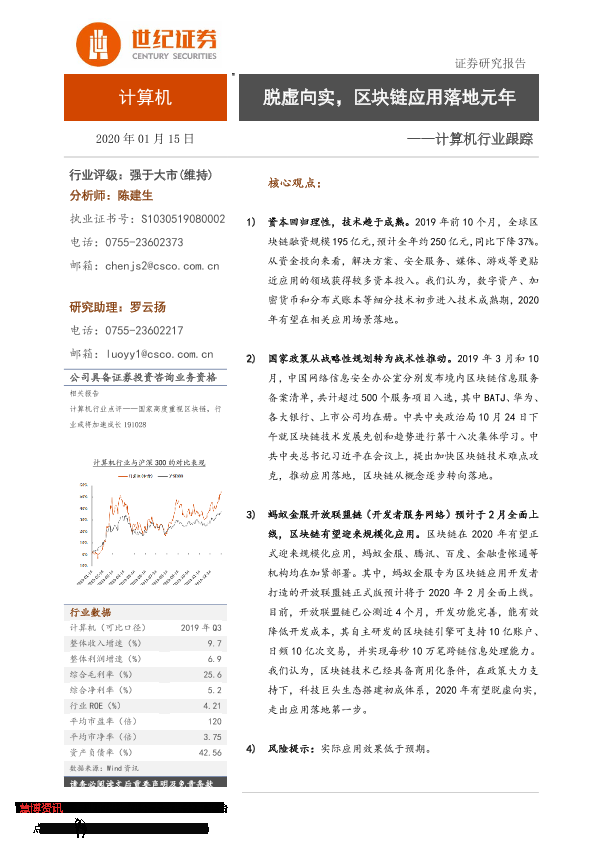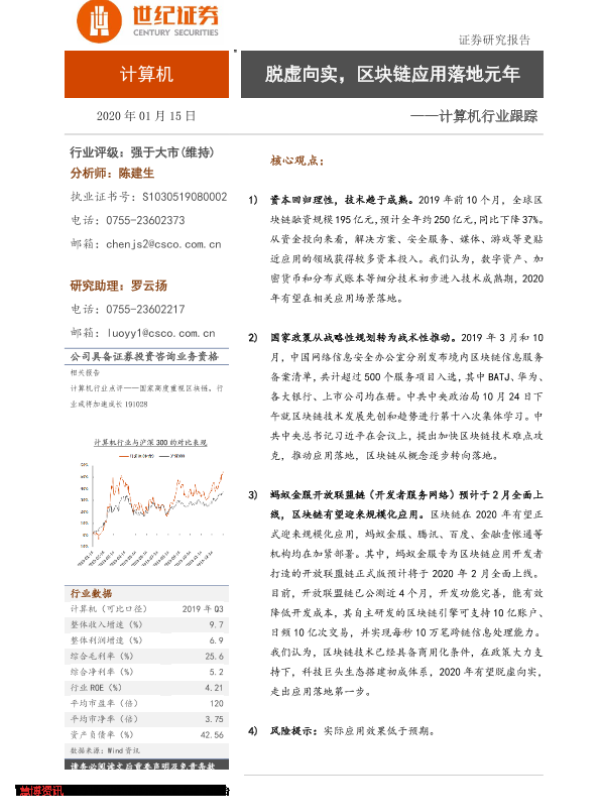 【世纪证券】【20200115】计算机行业跟踪:脱虚向实,区块链应用落地元年-10页