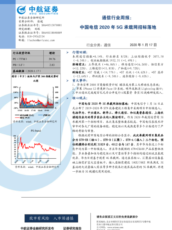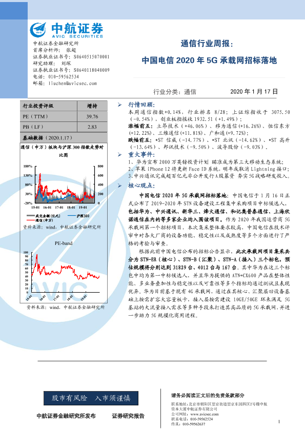 【中航证券】【20200117】通信行业周报:中国电信2020年5G承载网招标落地-3页