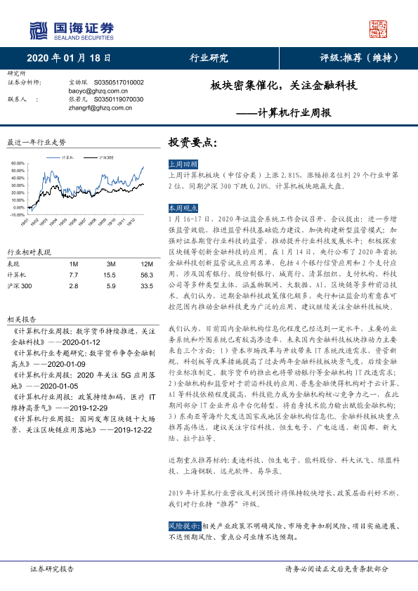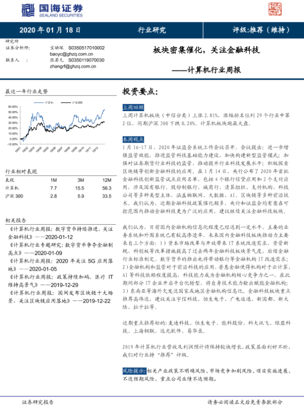 【国海证券】【20200118】计算机行业周报:板块密集催化,关注金融科技-15页