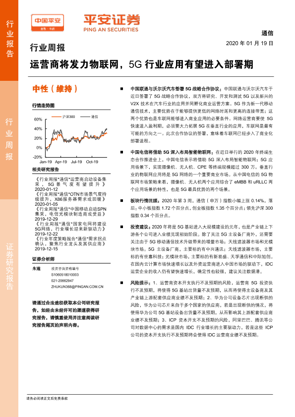 【平安证券】【20200119】通信行业周报:运营商将发力物联网,5G行业应用有望进入部署期-5页