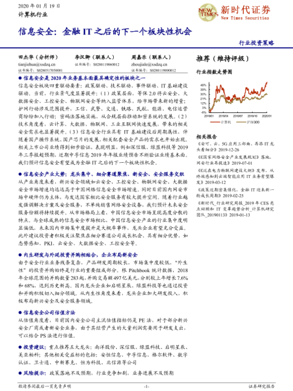 【新时代证券】【20200119】计算机行业:信息安全:金融IT之后的下一个板块性机会-3页