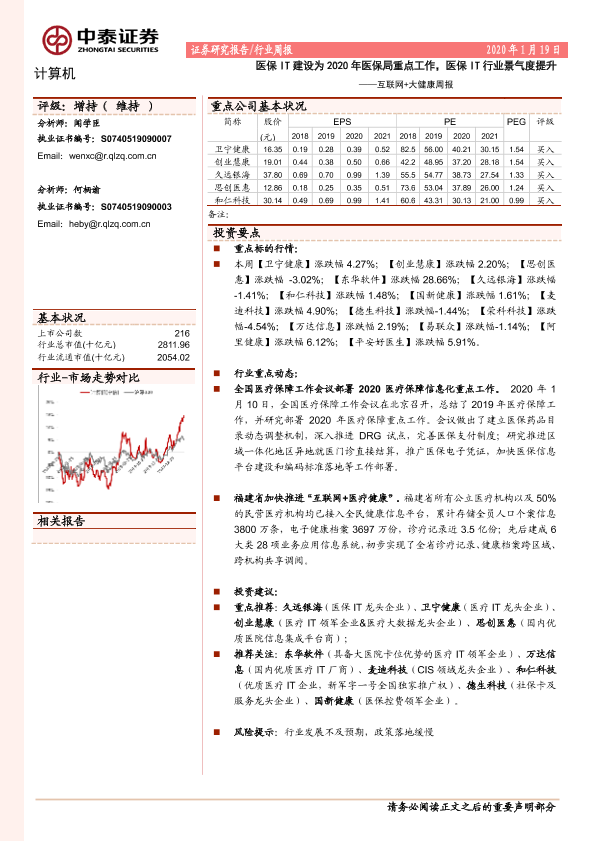 【中泰证券】【20200119】互联网+大健康周报:医保IT建设为2020年医保局重点工作,医保IT行业景气度提升-13页