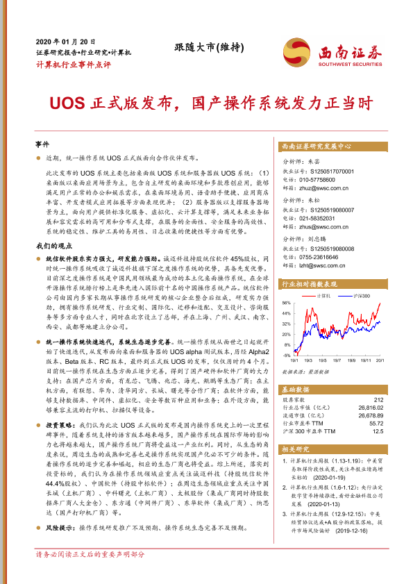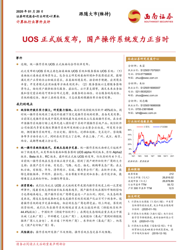 【西南证券】【20200120】计算机行业事件点评:UOS正式版发布,国产操作系统发力正当时-10页