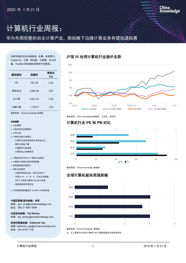 【China Knowledge】【20200121】计算机行业周报:华为布局完整的自主计算产业,新战略下边缘计算业务有望加速拓展-31页