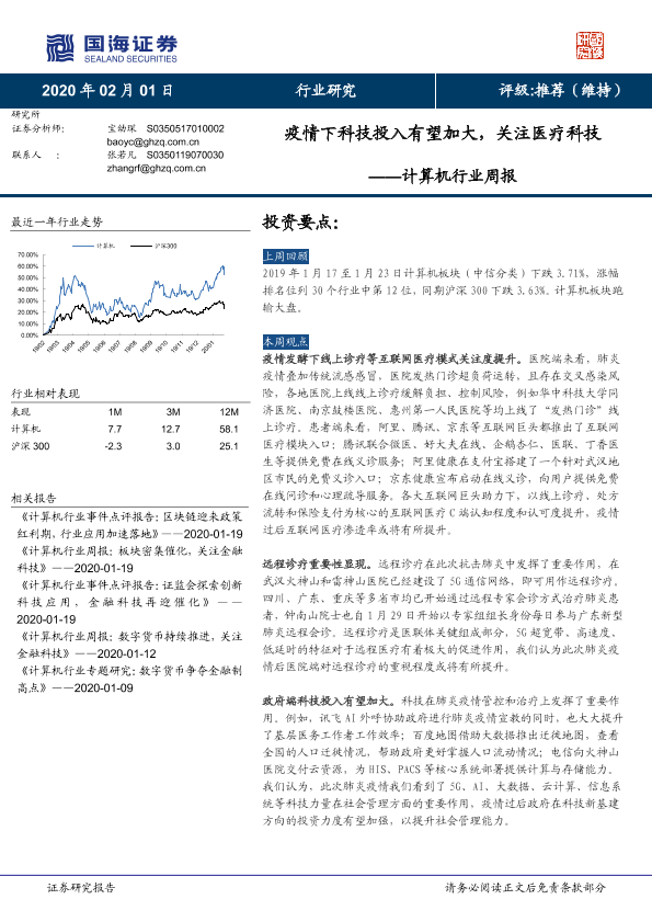【国海证券】【20200201】计算机行业周报:疫情下科技投入有望加大,关注医疗科技-19页