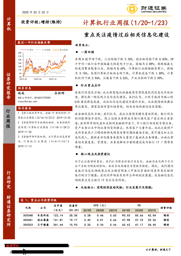 【财通证券】【20200202】20200202-财通证券-计算机行业周报:重点关注疫情过后相关信息化建设-9页