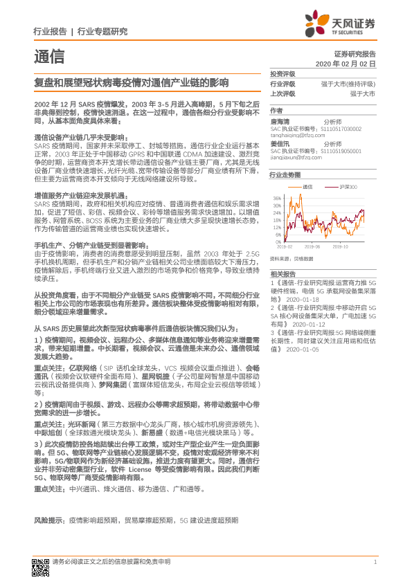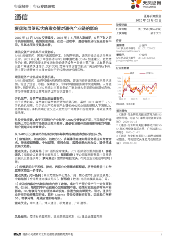 【天风证券】【20200202】通信行业专题研究:复盘和展望冠状病毒疫情对通信产业链的影响-13页