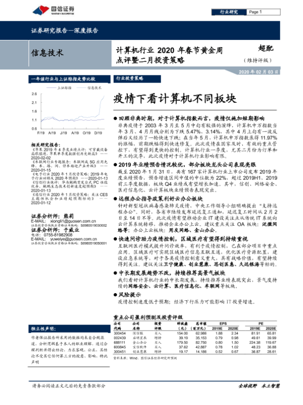 【国信证券】【20200203】计算机行业2020年春节黄金周点评暨二月投资策略:疫情下看计算机不同板块-27页